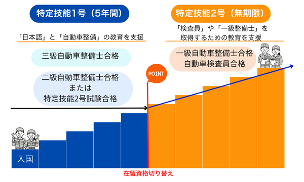 ASCAアスカプログラム(Automotive Service Career Advancement Program)は、外国人材の自動車整備士としての長期キャリア形成を支援する教育型プログラムです。